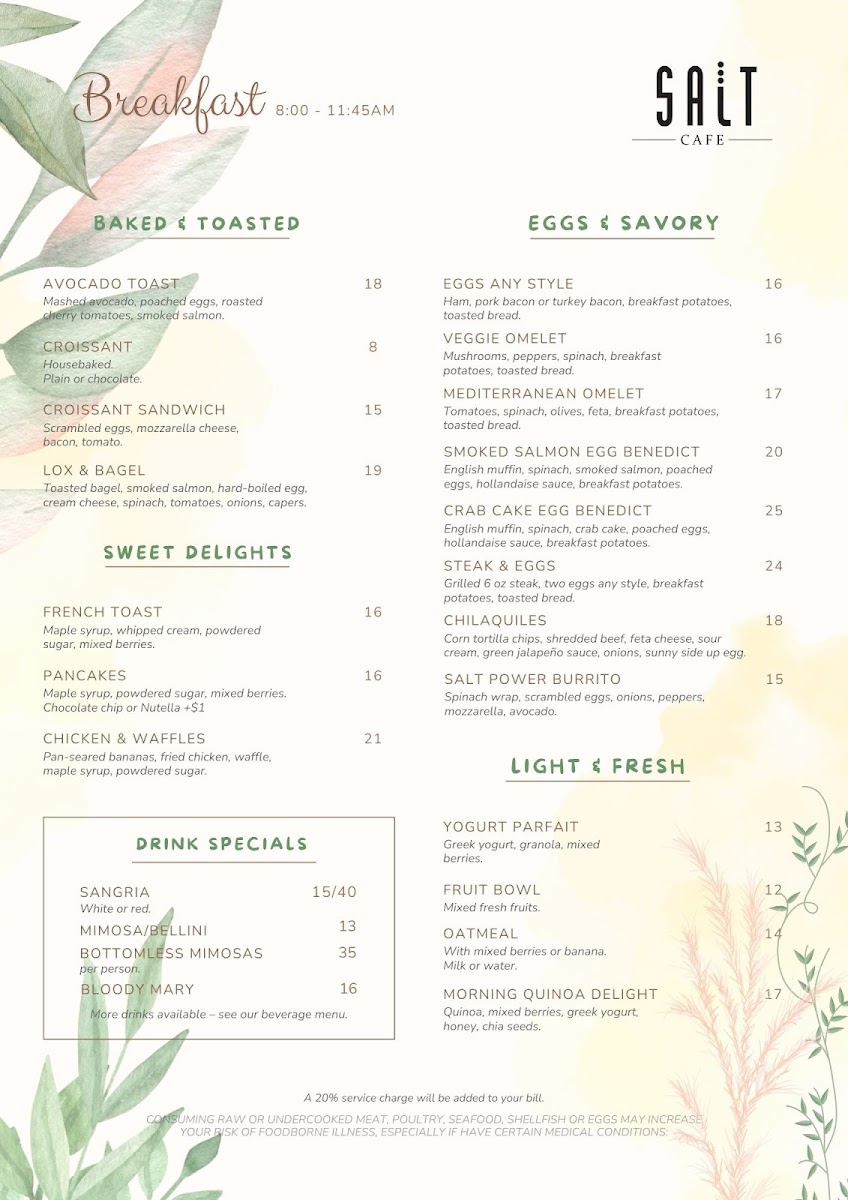In conclusion, Salt Cafe Miami Beach is more than just a restaurant; it is a delightful fusion of ambiance, culinary excellence, and warm service. Whether you're indulging in the vibrant ceviche, sipping on refreshing mimosas, or enjoying a cozy time with friends, Salt Cafe promises a memorable dining experience in the heart of Miami Beach.
